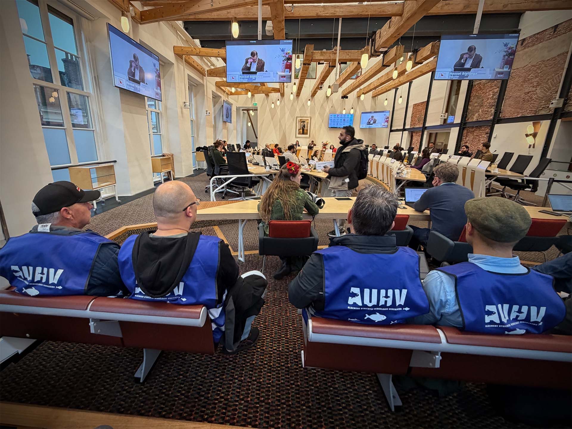 Op donderdagochtend 11 december stonden tal van in het blauw gestoken AUHV’ers weer paraat bij de behandeling van het aangepaste voorstel van de PvdD (Partij voor de