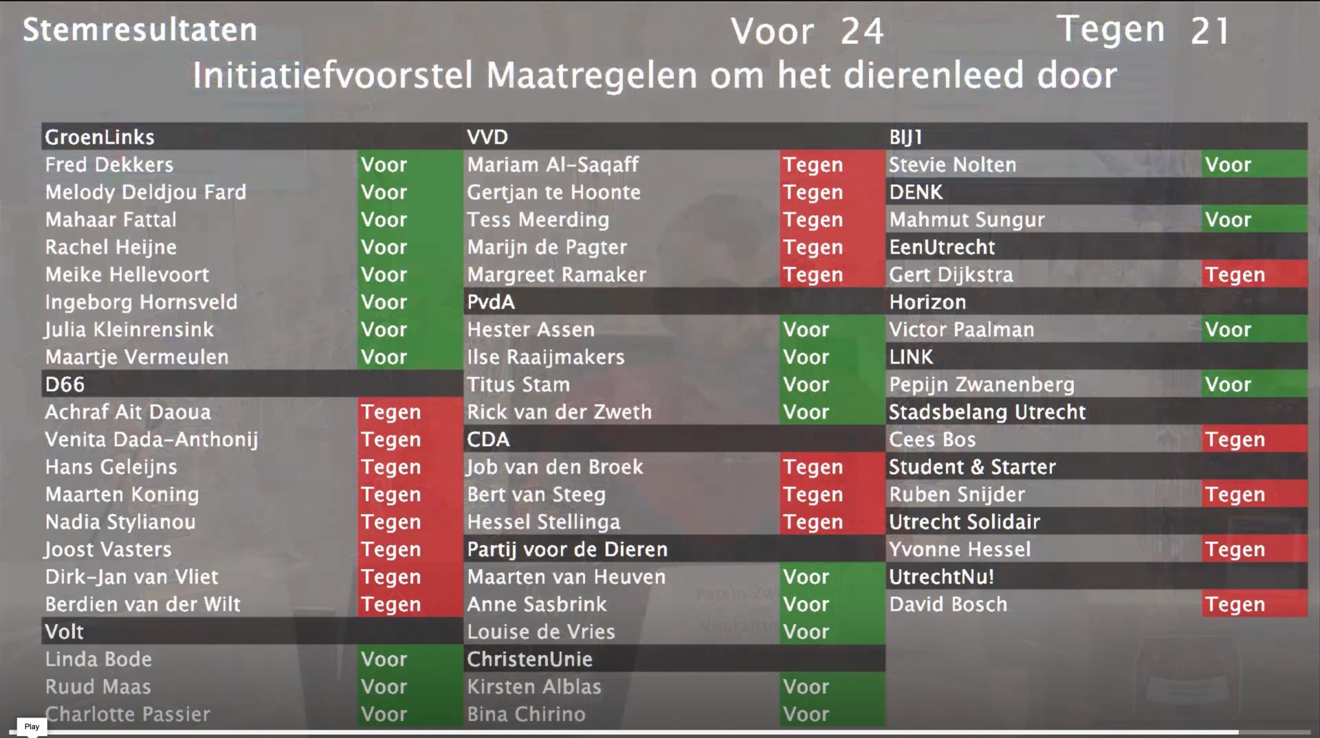 De Utrechtse gemeenteraad heeft op 18 december het initiatiefvoorstel van de Partij voor de Dieren over de hengelsport aangenomen. Ondanks aanpassingen aan het oorspronkelijke voorstel kreeg de PvdD voldoende