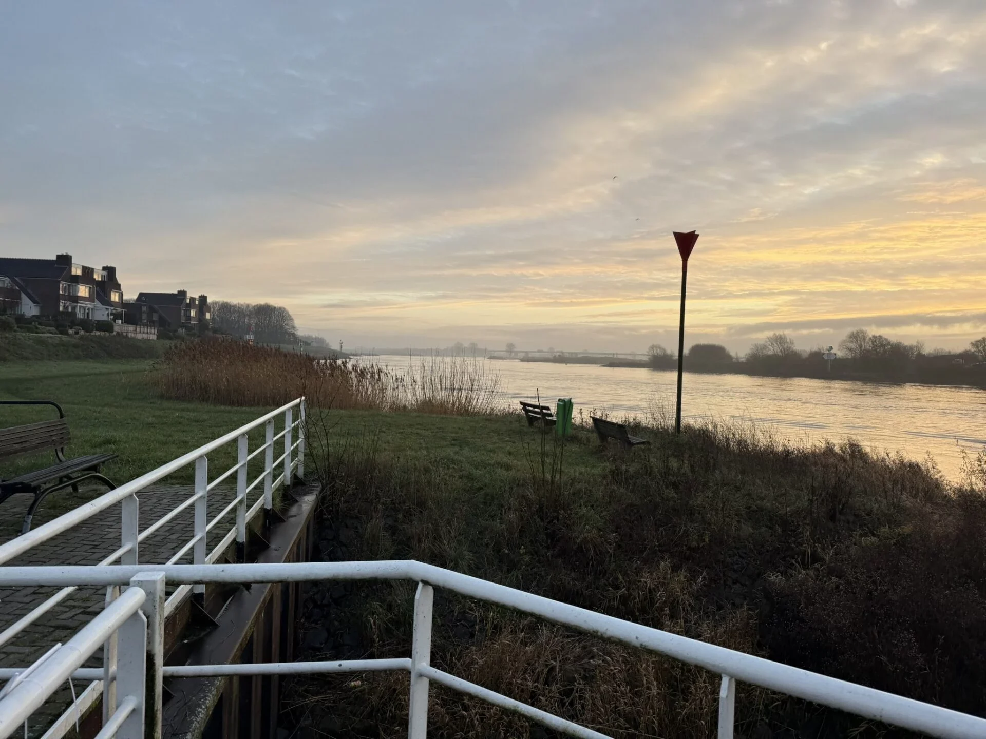 Robin, Marco en Arno en Robbert-Jan gingen op weg naar de pont van IJsselstein. Dat is vaak een prima plek voor snoekbaars, maar de steiger van de pont is verboden gebied tijdens de uren dat pont vaart, dus een prima plek voor een vroege start. De Lek stroomde behoorlijk, wat de kans op een snoekbaars aanzienlijk vergroot.